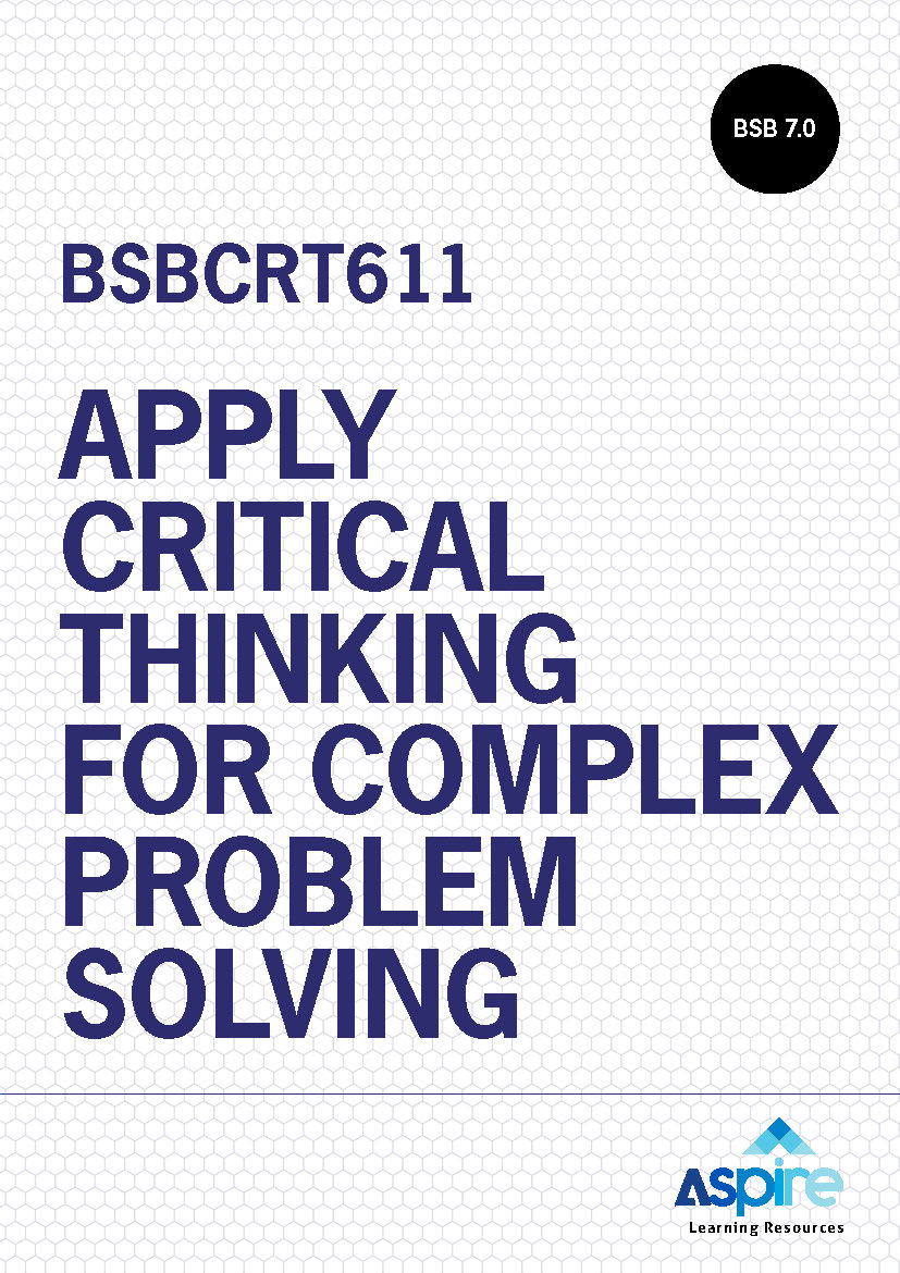 This Learner Guide covers the components of critical thinking required in workplace problem-solving. It explains how to identify the tasks required to solve a problem, including conducting research into legislative frameworks and organisational procedures. It then shows how to evaluate solutions and apply decision-making skills to proposing a solution, and how to refine the proposal by analysing feedback.