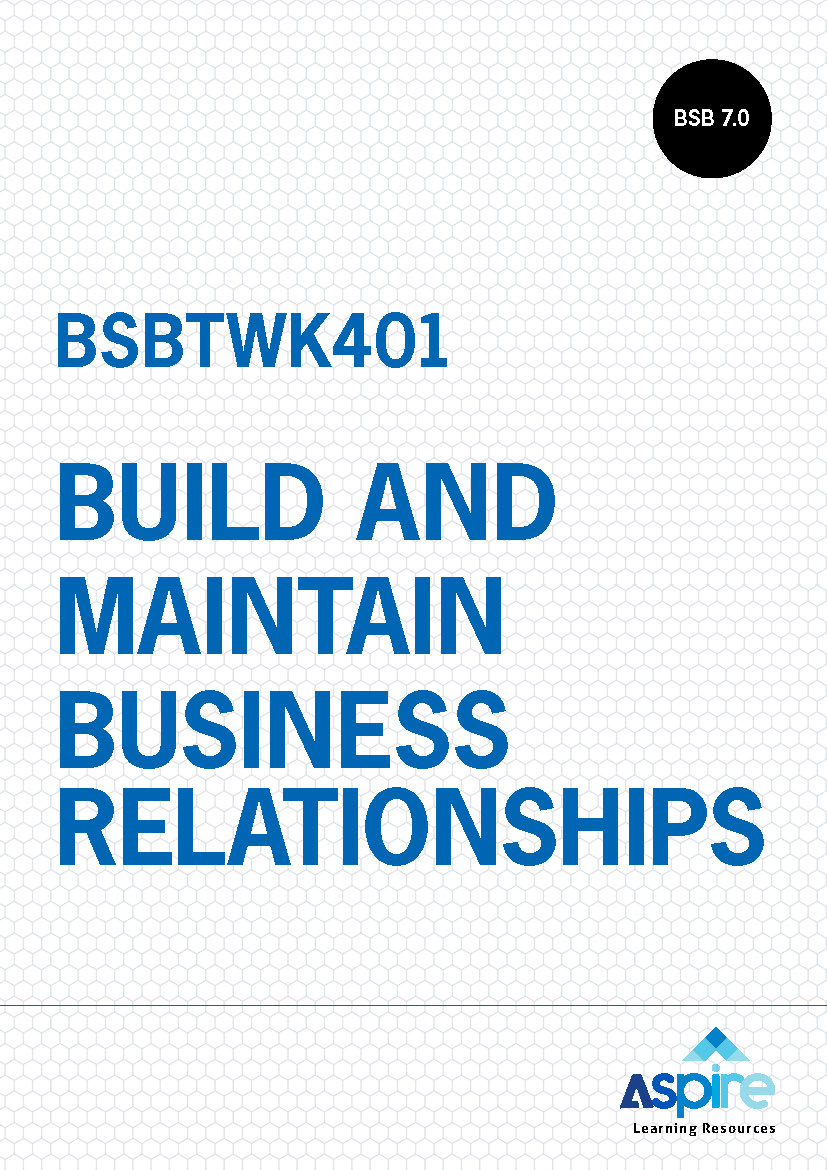 This Learner Guide explains how to establish business relationships by first identifying the objectives of the organisation to help determine networking opportunities and engage with business contacts. The material shows how to maintain business relationships by using negotiation and problem-solving techniques, and it describes various strategies for improving these relationships for ongoing mutual benefit.