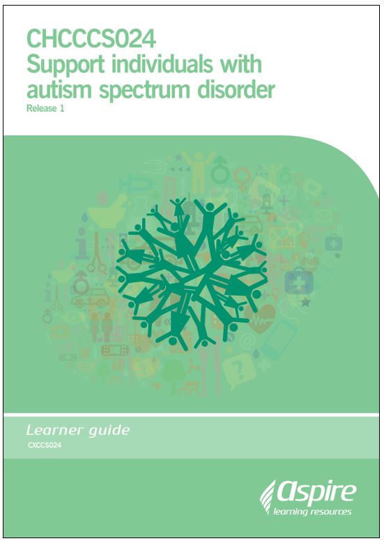 CHCCCS024 Support individuals with autism spectrum disorder describes the skills and knowledge required to work with individuals with autism spectrum disorder (ASD), with regard for their needs and within the context of support work. This unit applies to workers in a range of community services contexts who are responsible for their own outputs and are required to use some discretion and judgement. The skills in this unit must be applied in accordance with Commonwealth and state/territory legislation, Australian/New Zealand standards and industry codes of practice.