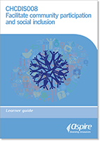 CHCDIS008 Facilitate community participation and social inclusion Release 1 describes the skills and knowledge required to develop and facilitate person centred strategies for participation in various community settings, functions and activities to enhance the psychosocial wellbeing and lifestyle of a person with disability. It includes information on how to: